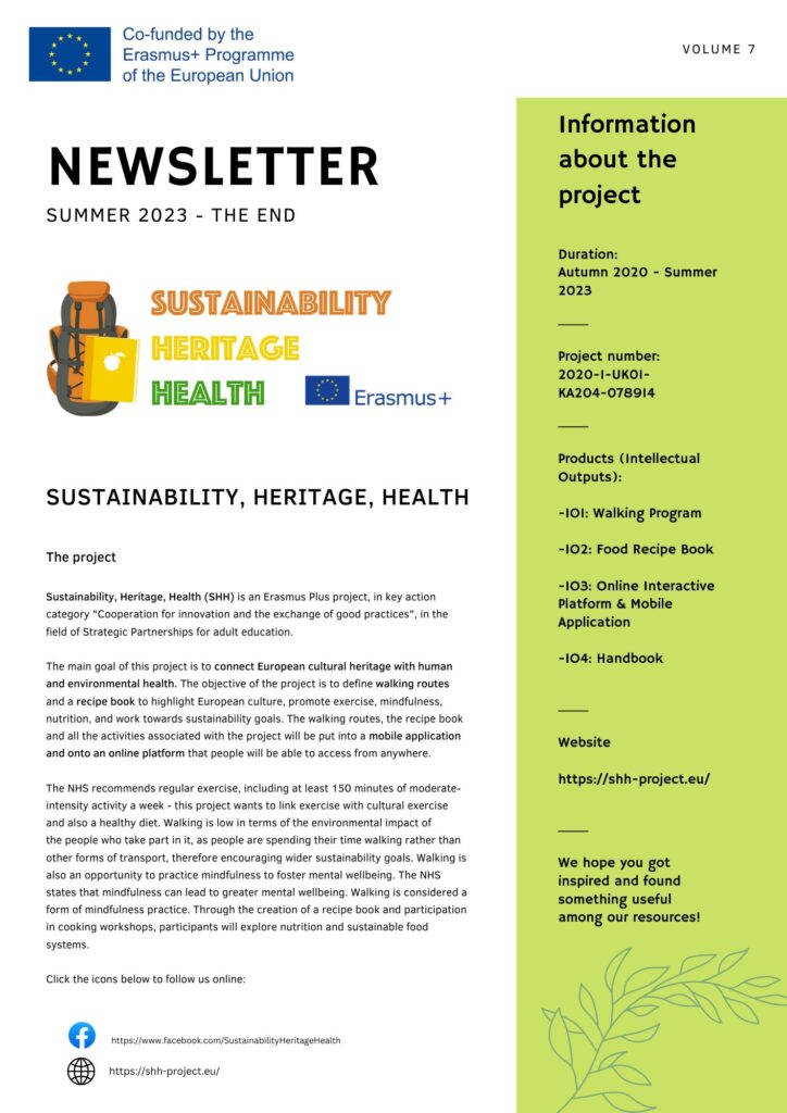News Sustainability, Heritage, Health – SHH The 7th and final Sustainability, Heritage, Health - SHH Newsletter is out! Read about our…adminAugust 23, 2023